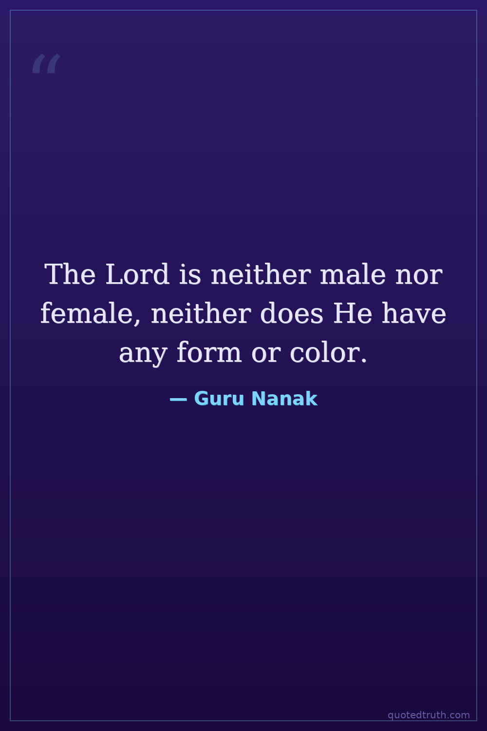 The Lord is neither male nor female, neither does He have any form or color.