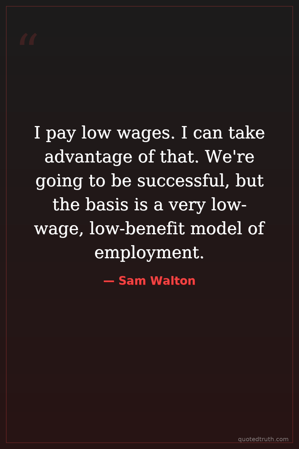 I pay low wages. I can take advantage of that. We're going to be successful, but the basis is a very low-wage, low-benefit model of employment.