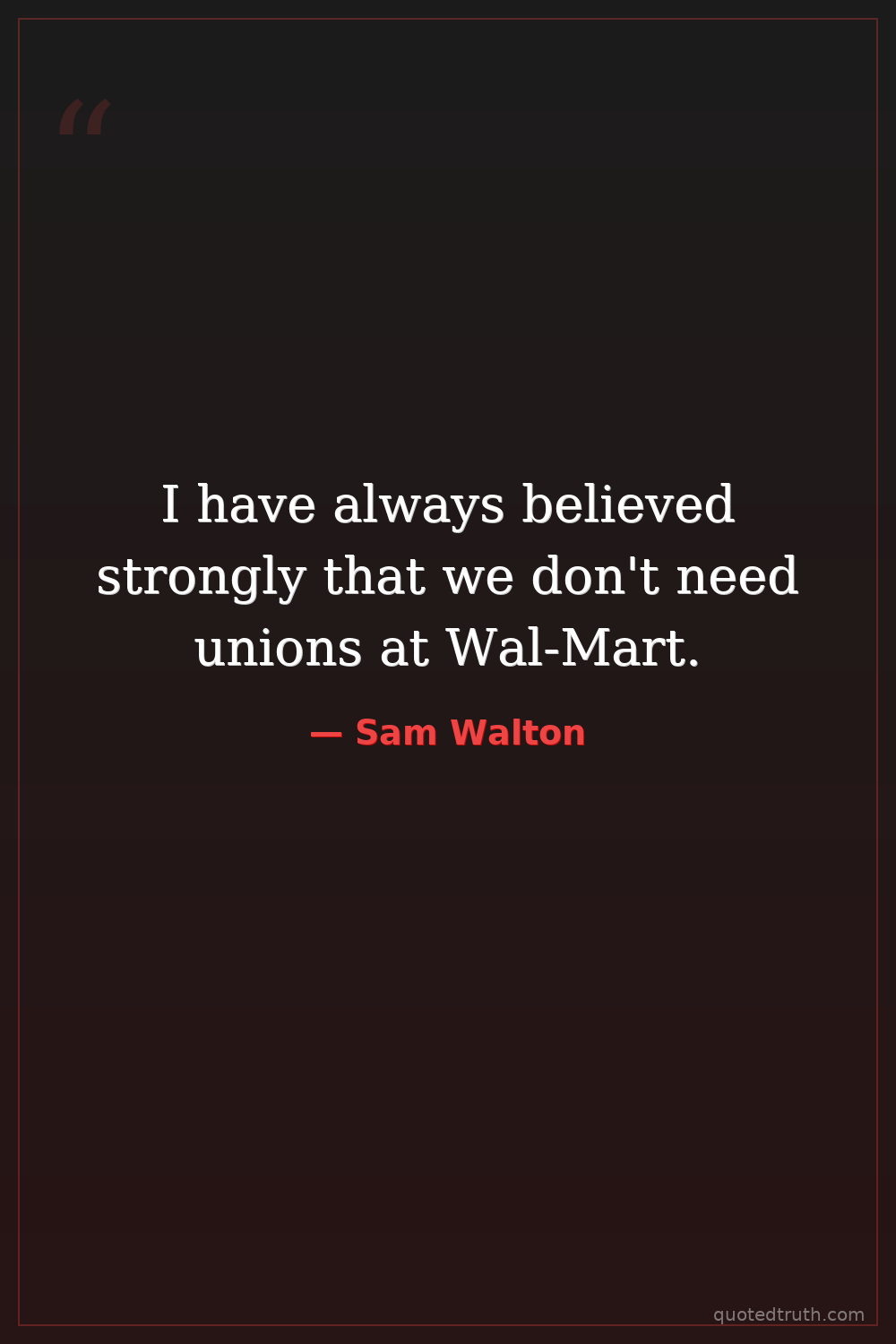 I have always believed strongly that we don't need unions at Wal-Mart.
