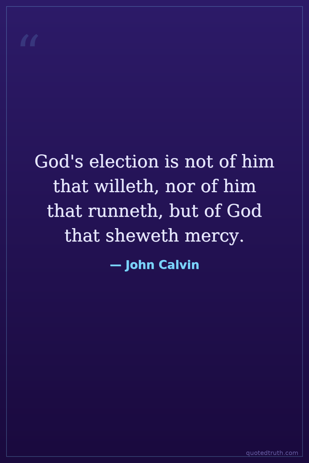 Controversial"The decree is dreadful, I confess. Yet no one can deny that God foreknew what end man was to have before he created him, and consequently foreknew because he so ordained by his decree."