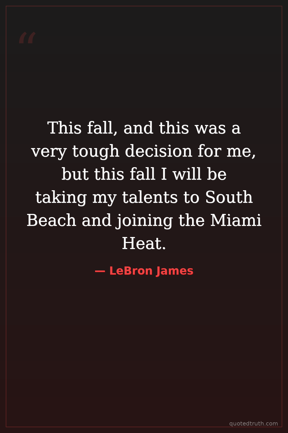 This fall, and this was a very tough decision for me, but this fall I will be taking my talents to South Beach and joining the Miami Heat.