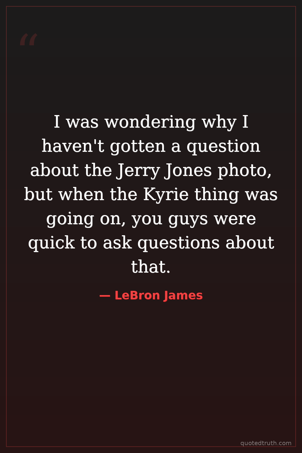 I was wondering why I haven't gotten a question about the Jerry Jones photo, but when the Kyrie thing was going on, you guys were quick to ask questions about that.