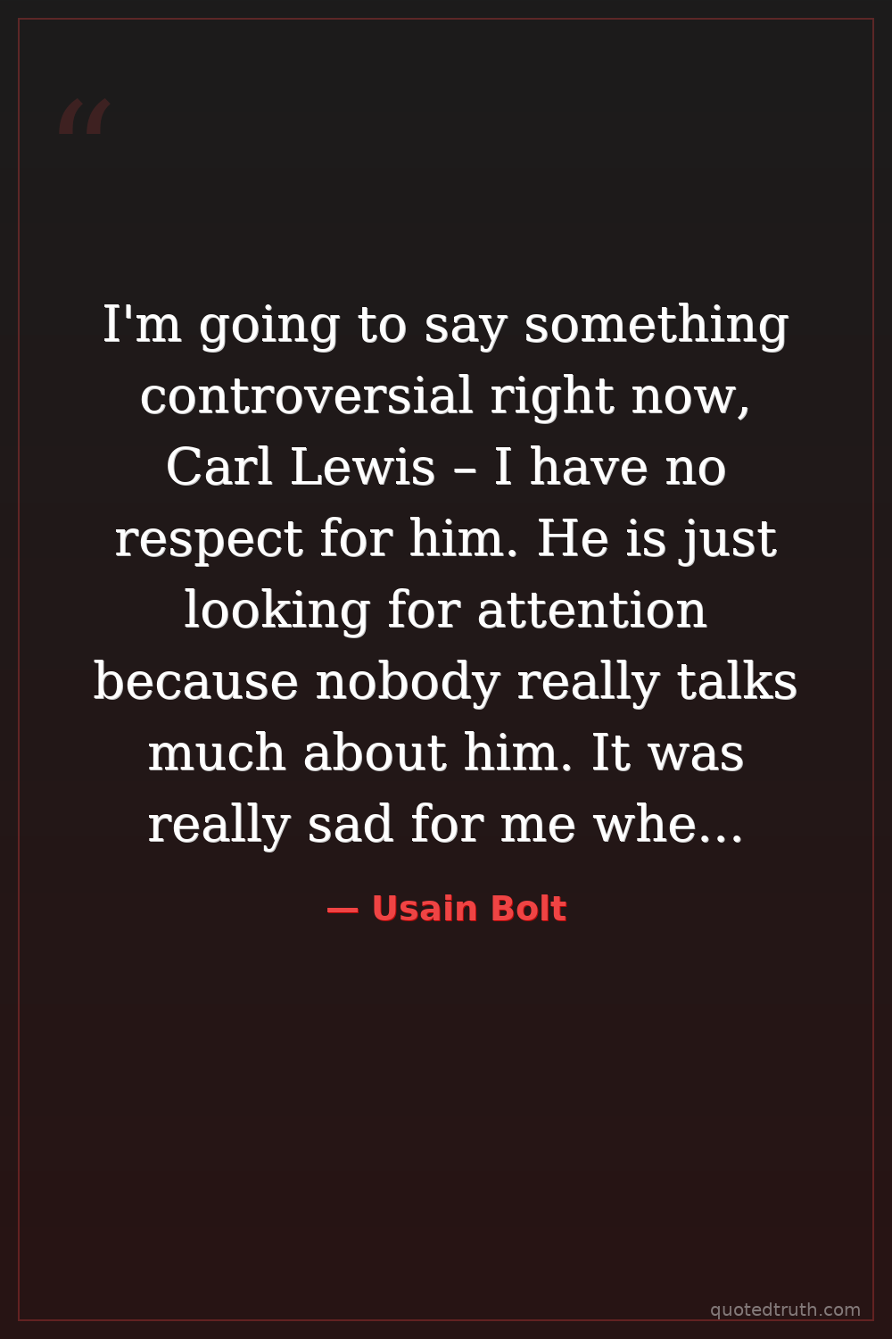 I'm going to say something controversial right now, Carl Lewis – I have no respect for him. He is just looking for attention because nobody really talks much about him. It was really sad for me when I heard what he was saying, it was upsetting. I've lost all respect for him. It was all about drugs stuff for me. For an athlete to be out of the sport saying that was really upsetting.