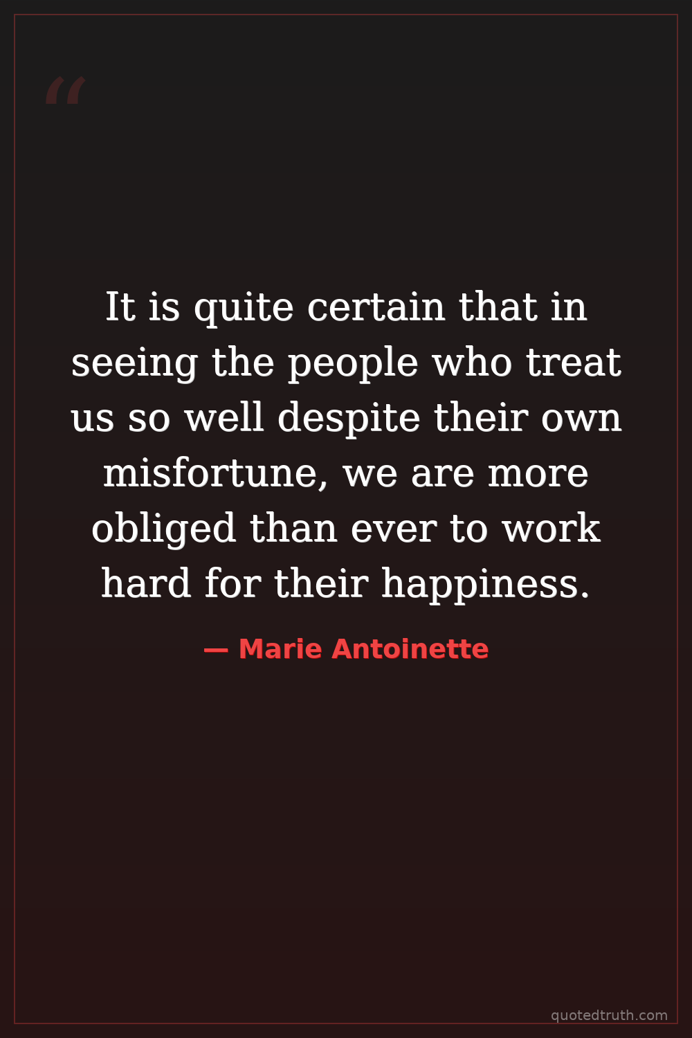 It is quite certain that in seeing the people who treat us so well despite their own misfortune, we are more obliged than ever to work hard for their happiness.