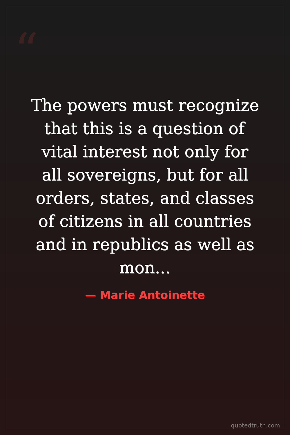 The powers must recognize that this is a question of vital interest not only for all sovereigns, but for all orders, states, and classes of citizens in all countries and in republics as well as monarchies.