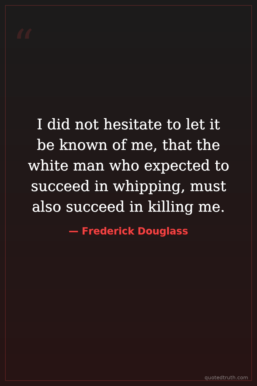 I did not hesitate to let it be known of me, that the white man who expected to succeed in whipping, must also succeed in killing me.