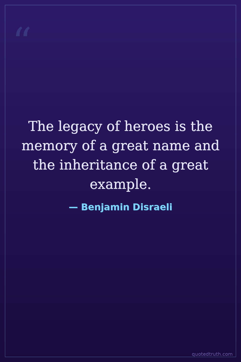 The legacy of heroes is the memory of a great name and the inheritance of a great example.