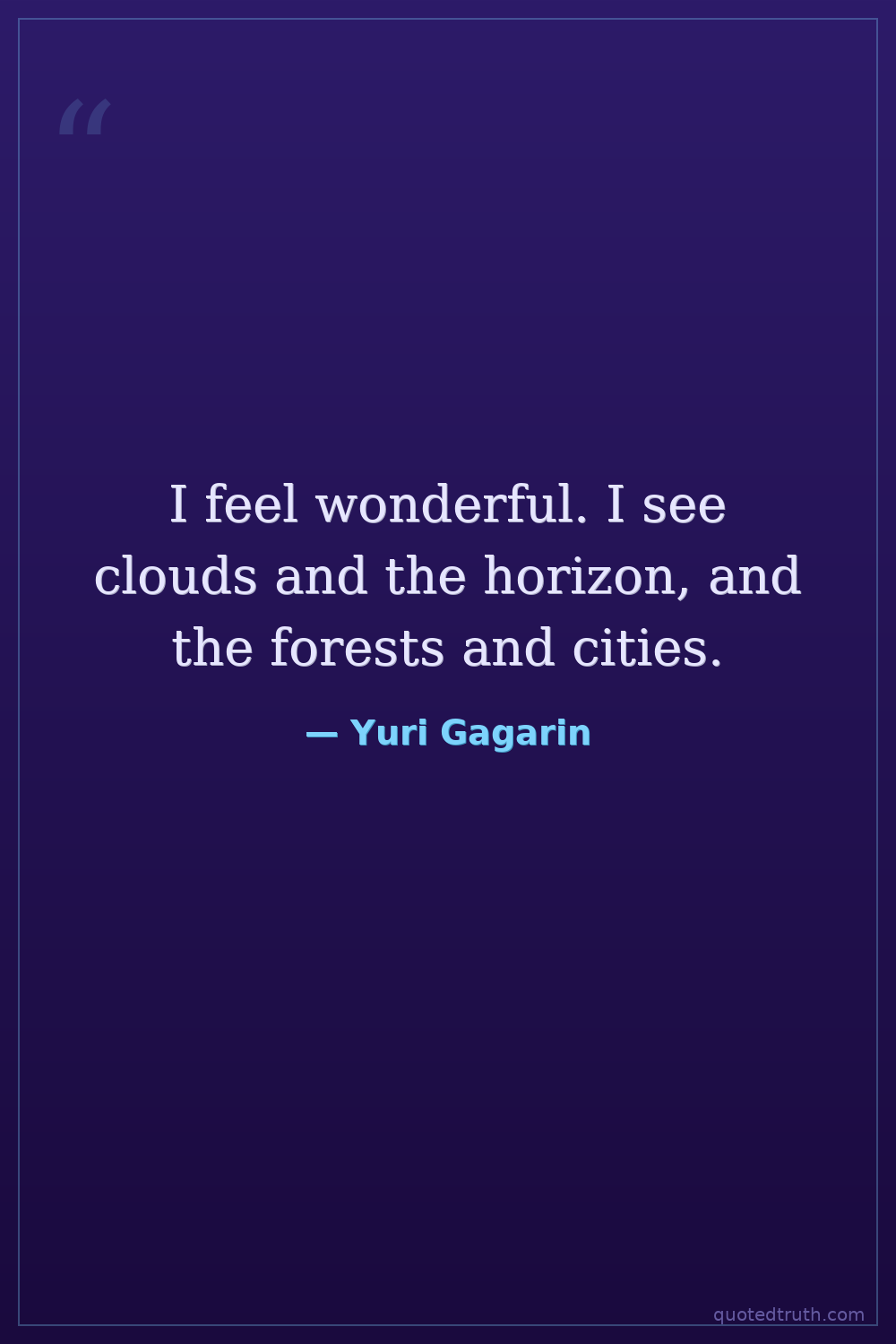 "Circling the Earth in my orbital spaceship I marveled at the beauty of our planet. People of the world! Let us safeguard and enhance this beauty - not destroy it!"
