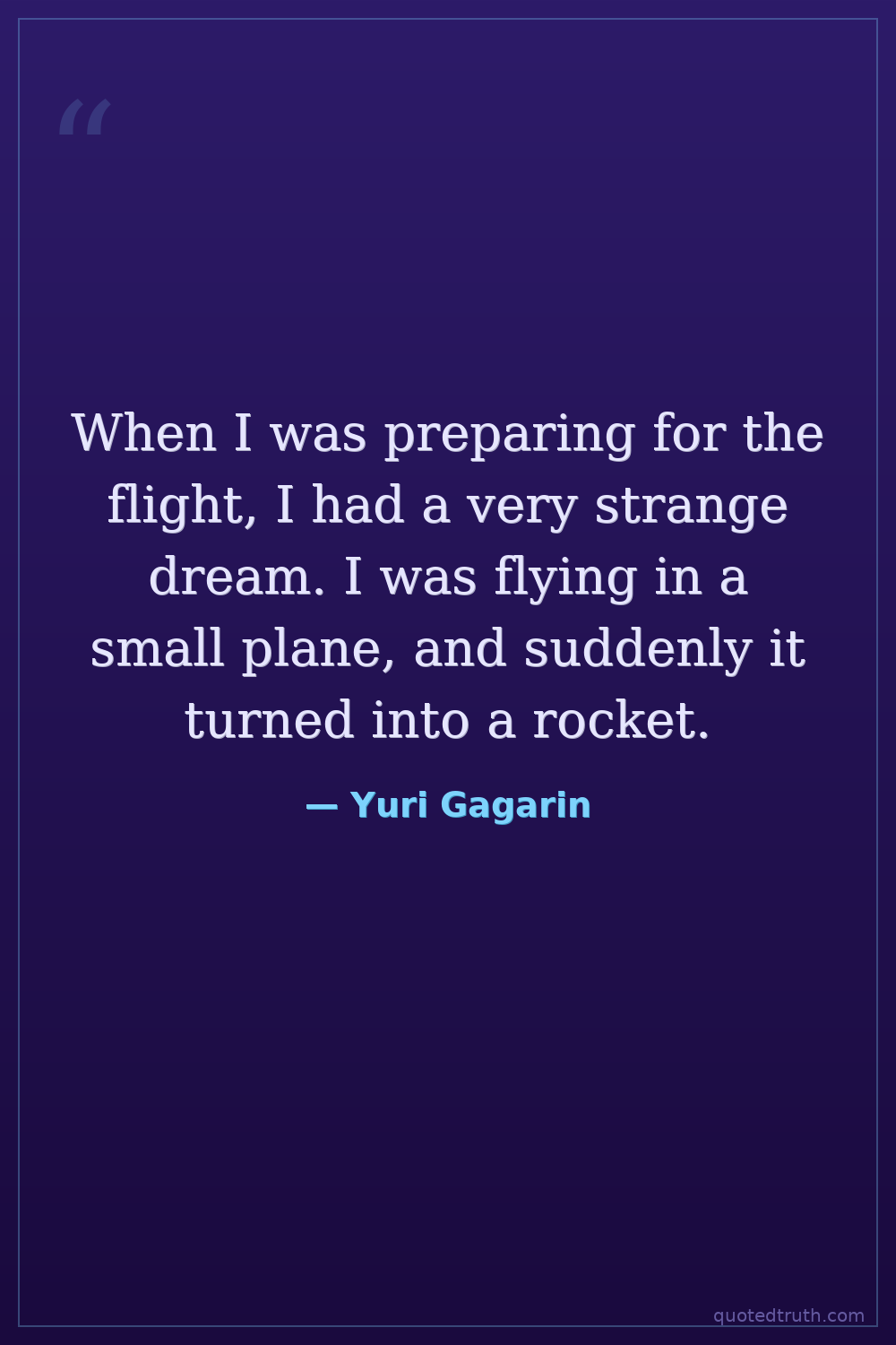 When I was preparing for the flight, I had a very strange dream. I was flying in a small plane, and suddenly it turned into a rocket.