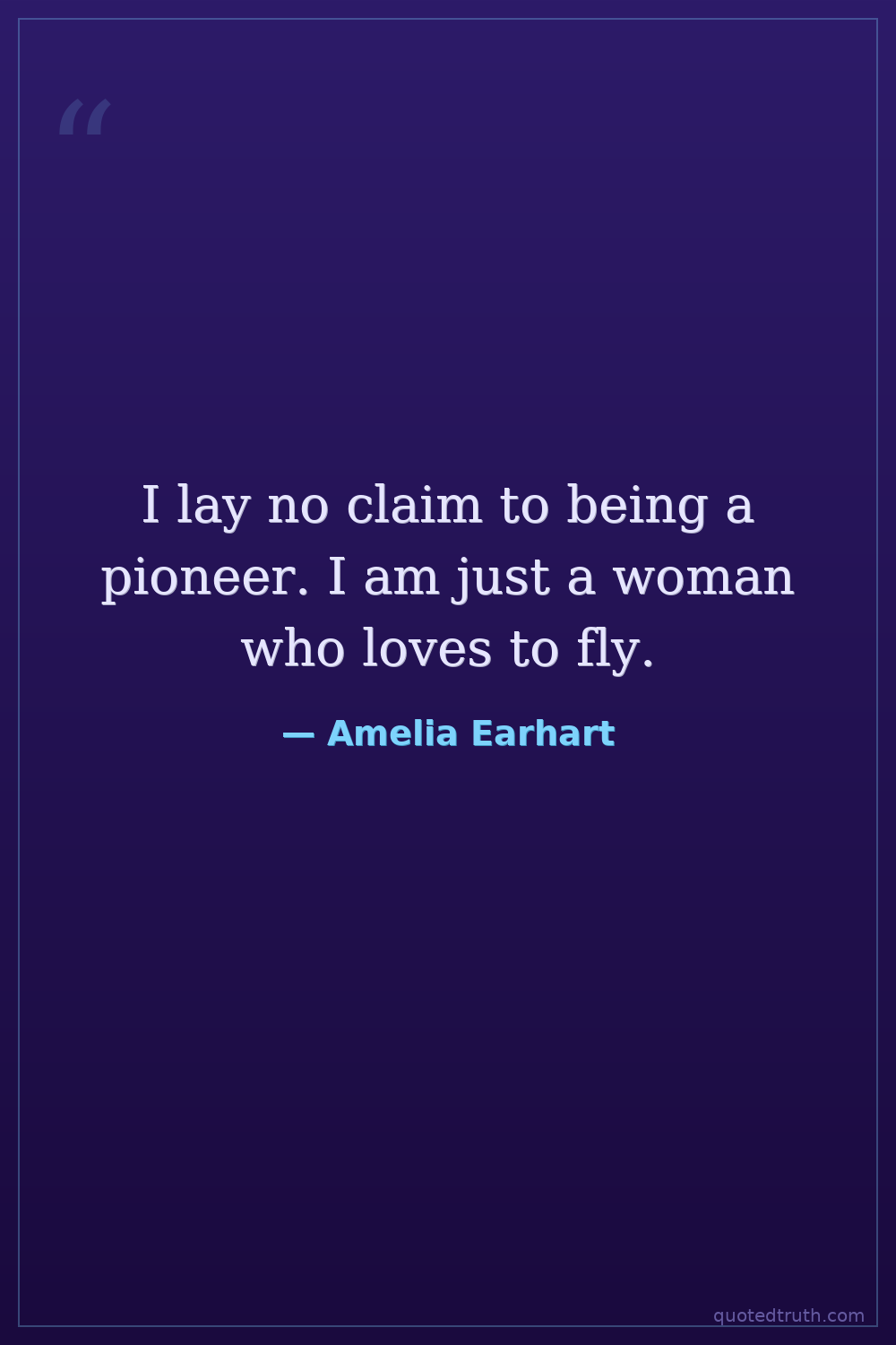 I lay no claim to being a pioneer. I am just a woman who loves to fly.