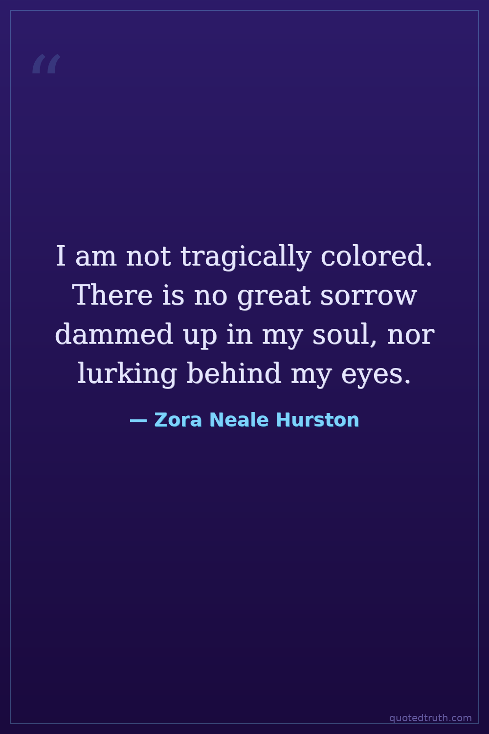 I am not tragically colored. There is no great sorrow dammed up in my soul, nor lurking behind my eyes.