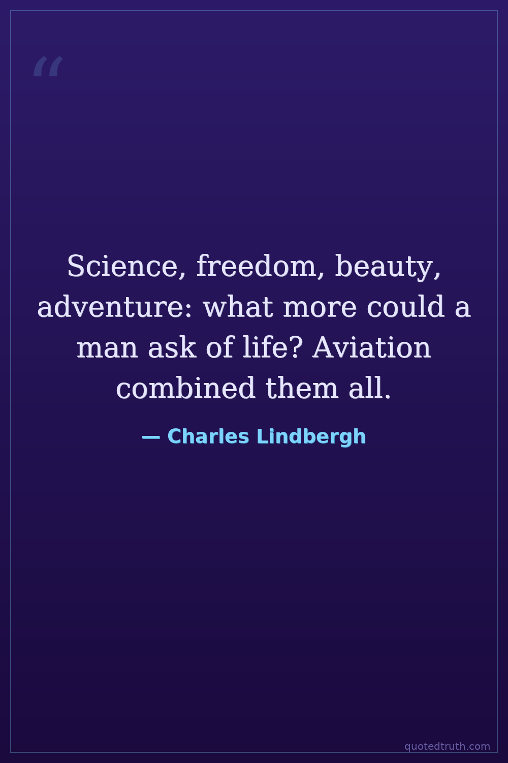 Science, freedom, beauty, adventure: what more could a man ask of life? Aviation combined them all.