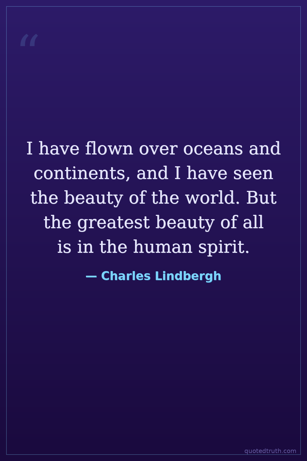 I have flown over oceans and continents, and I have seen the beauty of the world. But the greatest beauty of all is in the human spirit.