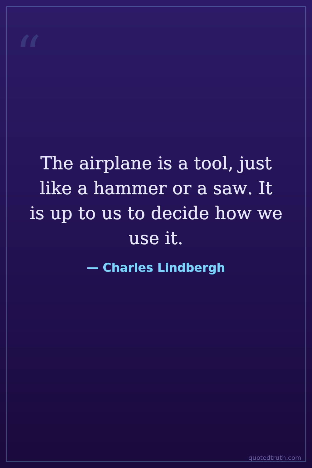The airplane is a tool, just like a hammer or a saw. It is up to us to decide how we use it.