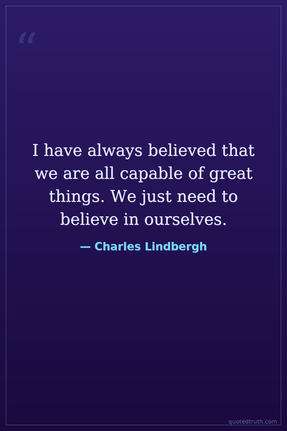 I have always believed that we are all capable of great things. We just need to believe in ourselves.
