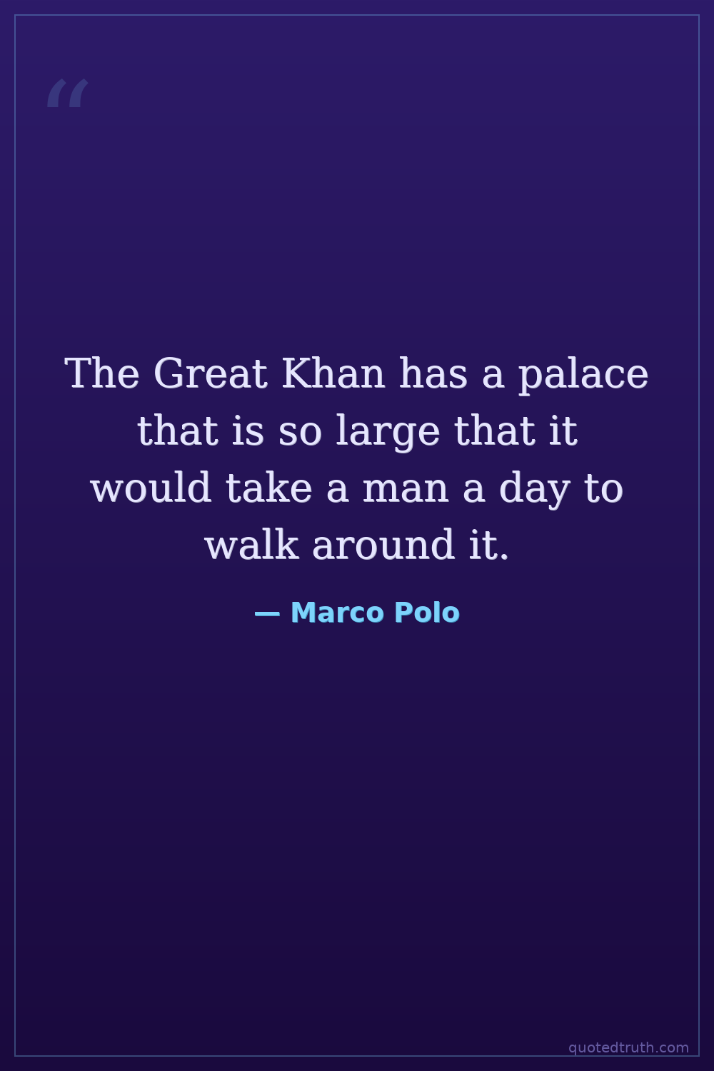 The Great Khan has a palace that is so large that it would take a man a day to walk around it.