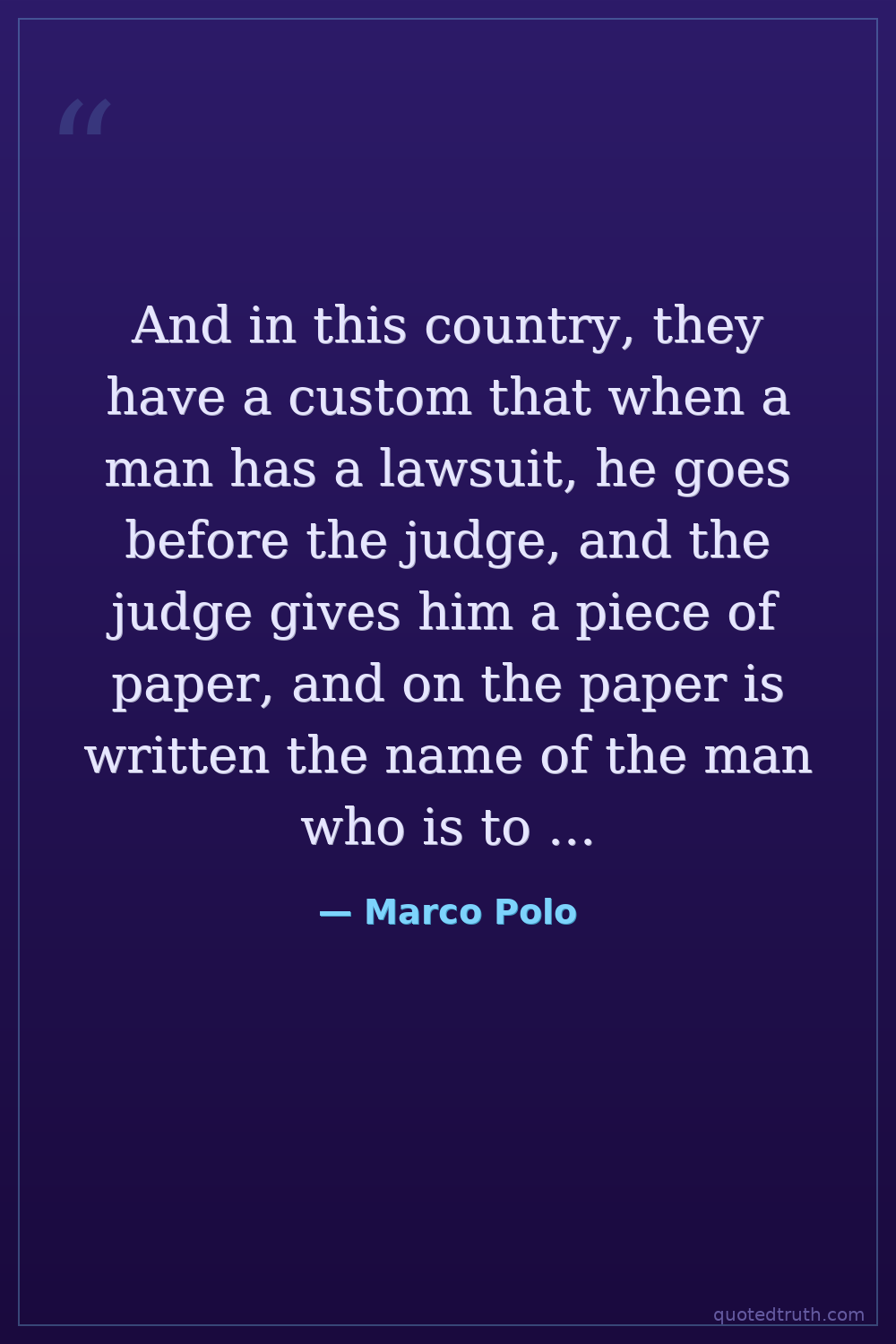 And in this country, they have a custom that when a man has a lawsuit, he goes before the judge, and the judge gives him a piece of paper, and on the paper is written the name of the man who is to be punished. And then the man who is to be punished is taken to a public place, and he is beaten with sticks until he confesses.