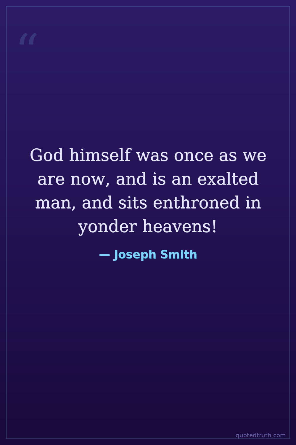 God himself was once as we are now, and is an exalted man, and sits enthroned in yonder heavens!