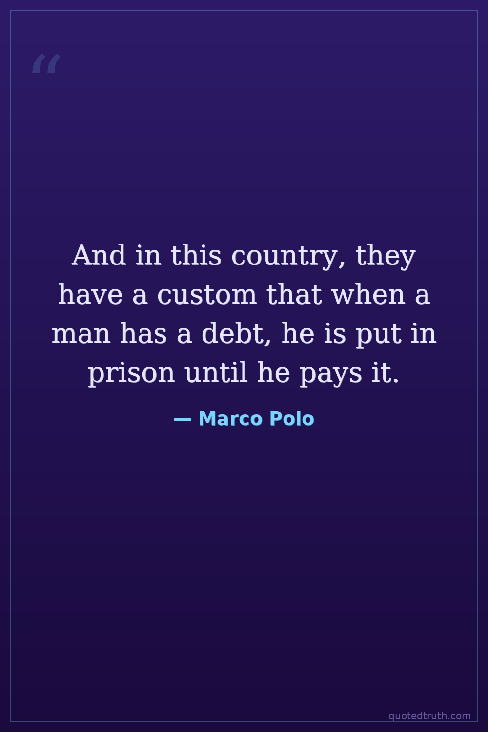 And in this country, they have a custom that when a man has a debt, he is put in prison until he pays it.