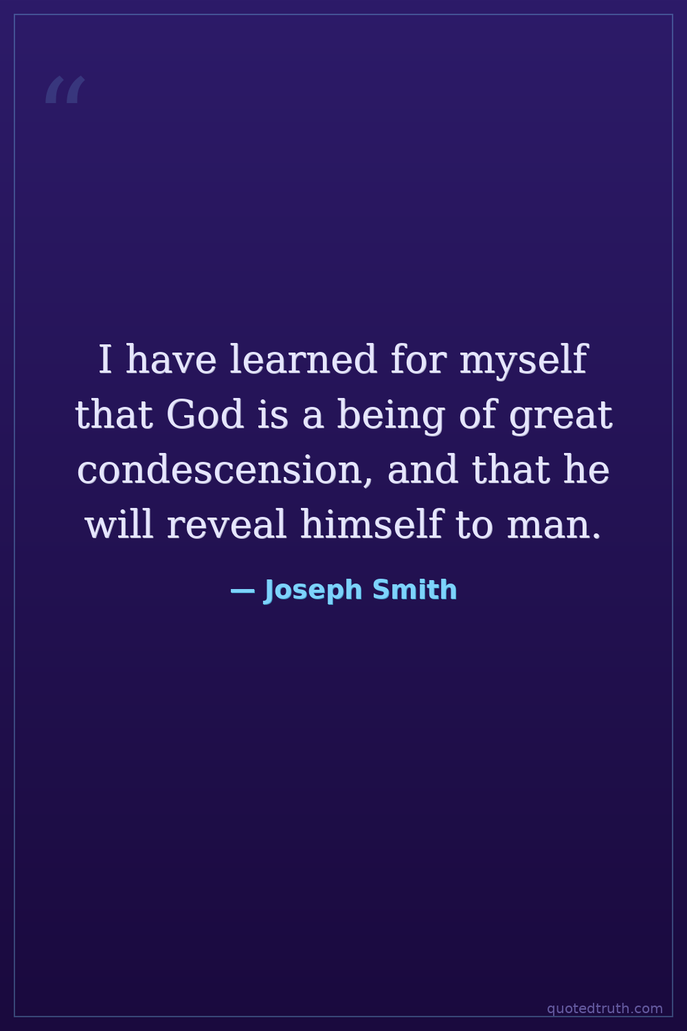 I have learned for myself that God is a being of great condescension, and that he will reveal himself to man.