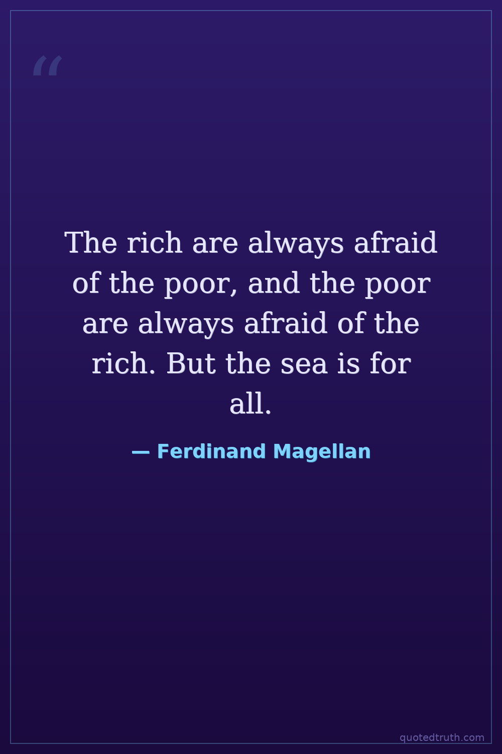 The rich are always afraid of the poor, and the poor are always afraid of the rich. But the sea is for all.