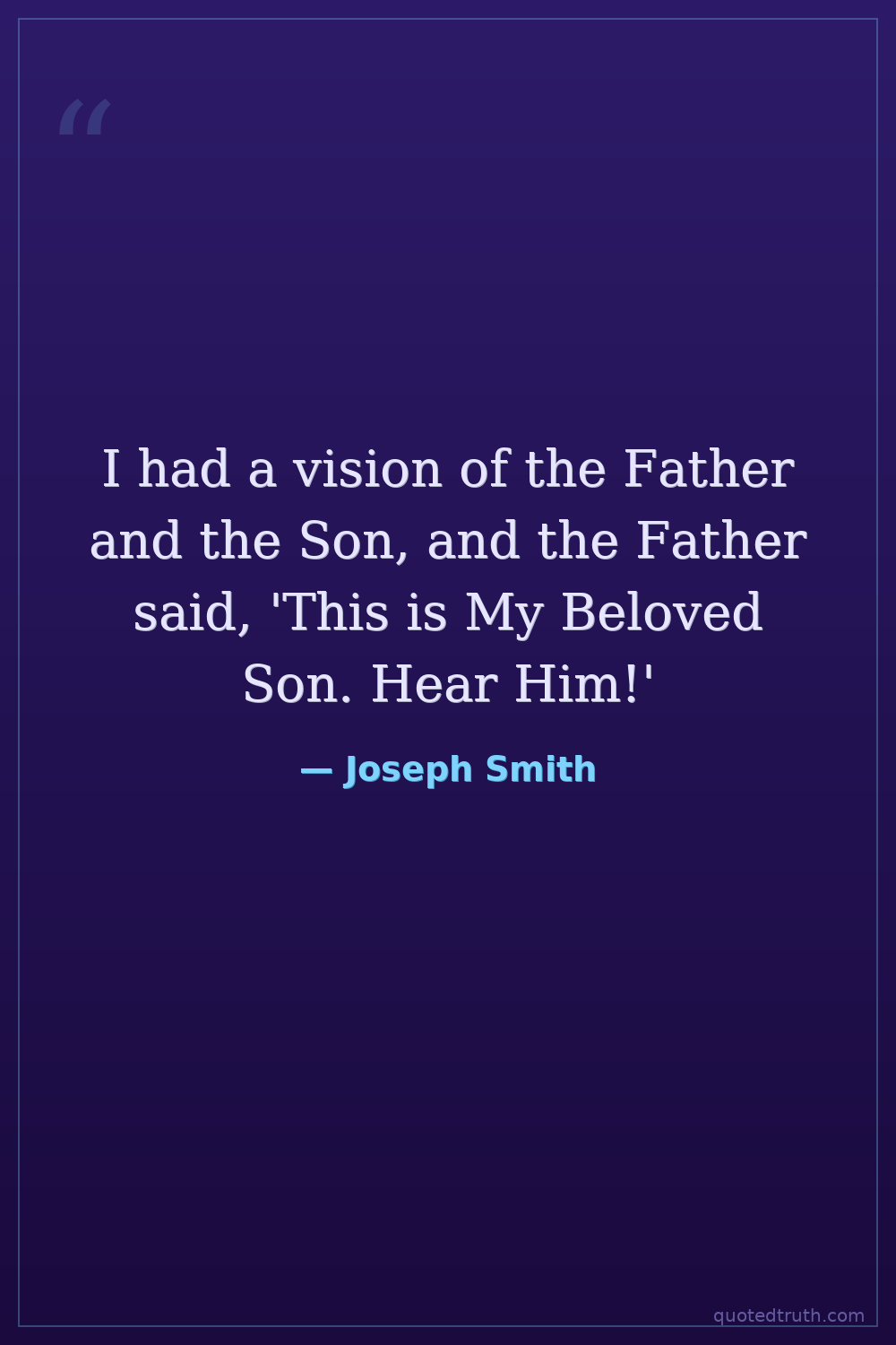 I had a vision of the Father and the Son, and the Father said, 'This is My Beloved Son. Hear Him!'