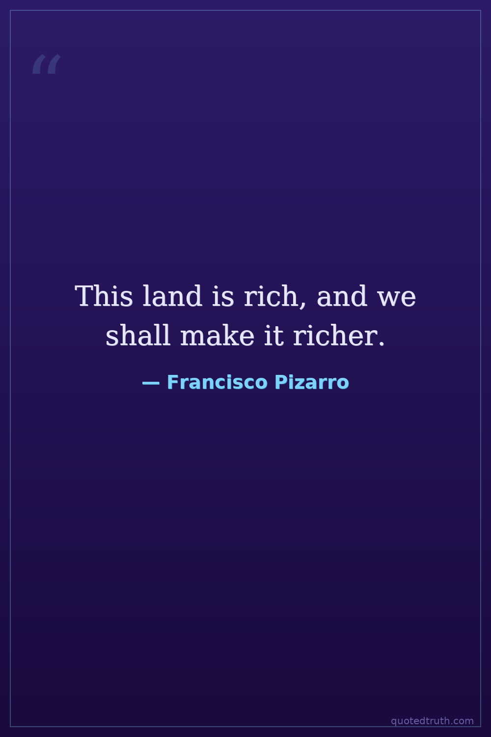 This land is rich, and we shall make it richer.