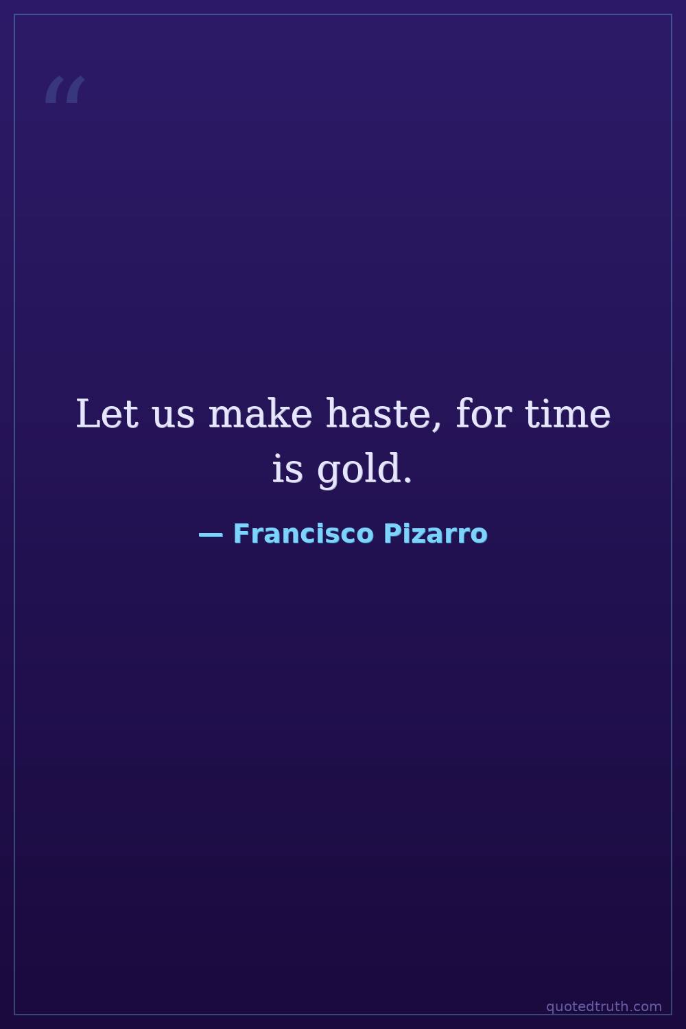 Let us make haste, for time is gold.
