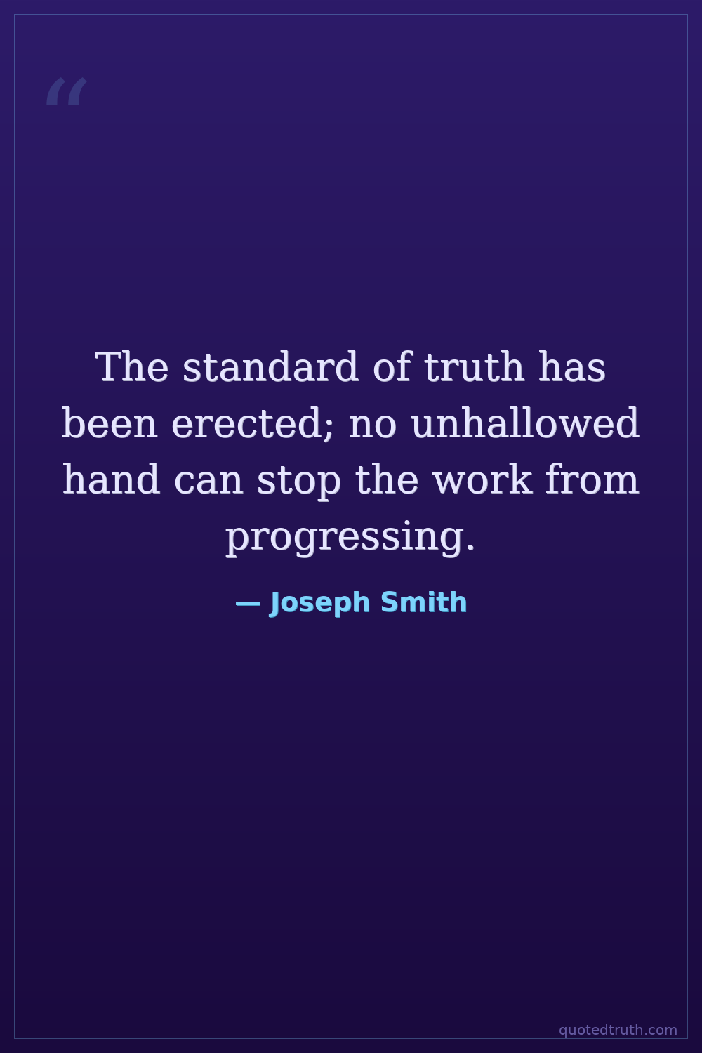The standard of truth has been erected; no unhallowed hand can stop the work from progressing.