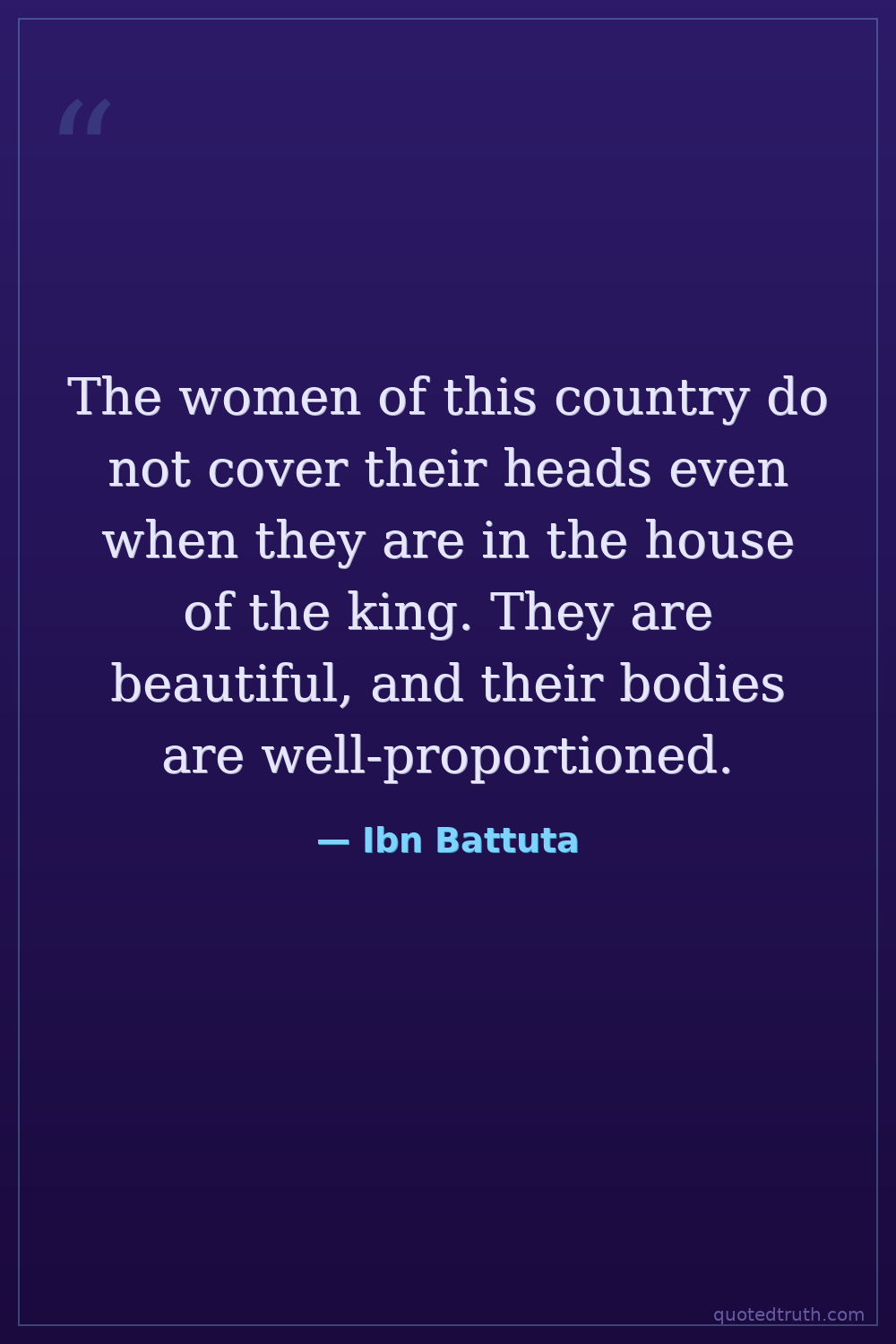 The women of this country do not cover their heads even when they are in the house of the king. They are beautiful, and their bodies are well-proportioned.