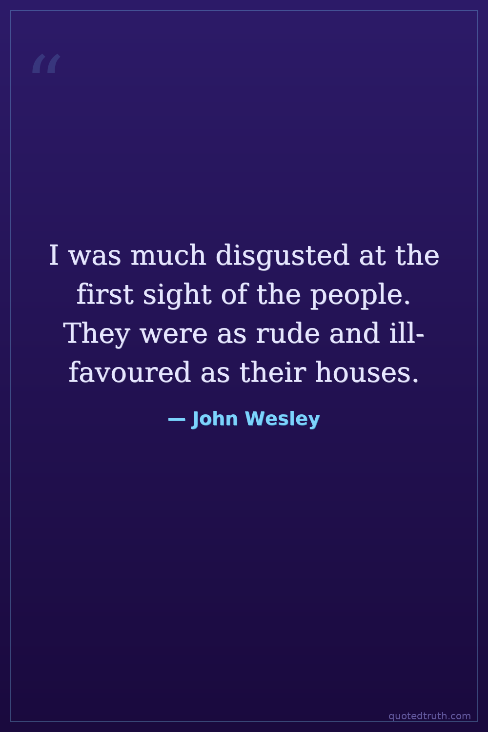 I was much disgusted at the first sight of the people. They were as rude and ill-favoured as their houses.