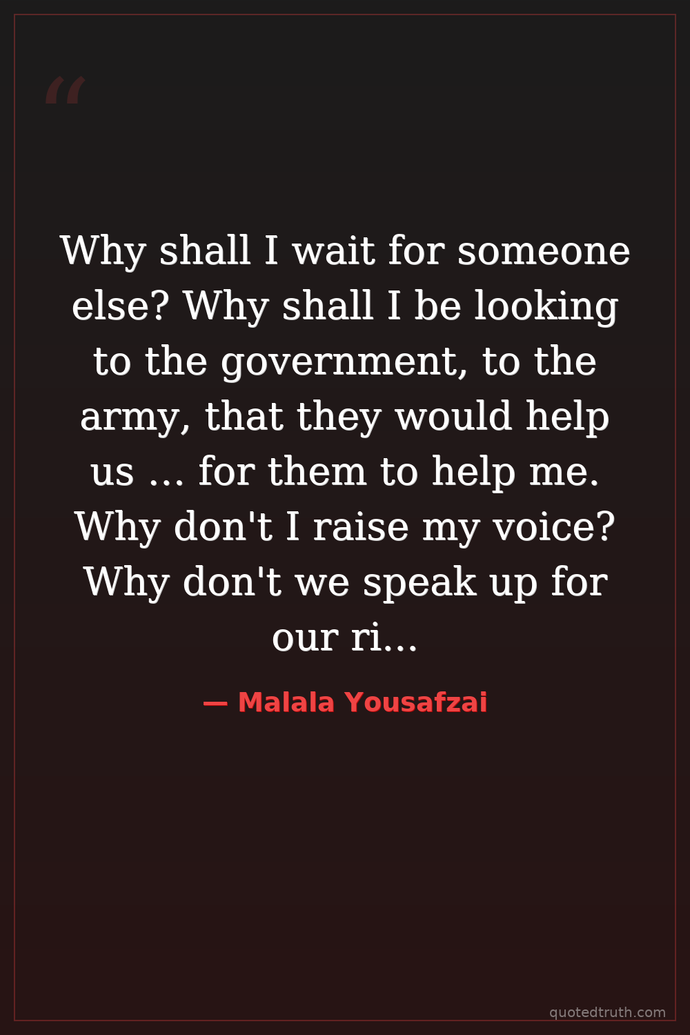 Why shall I wait for someone else? Why shall I be looking to the government, to the army, that they would help us … for them to help me. Why don't I raise my voice? Why don't we speak up for our rights?