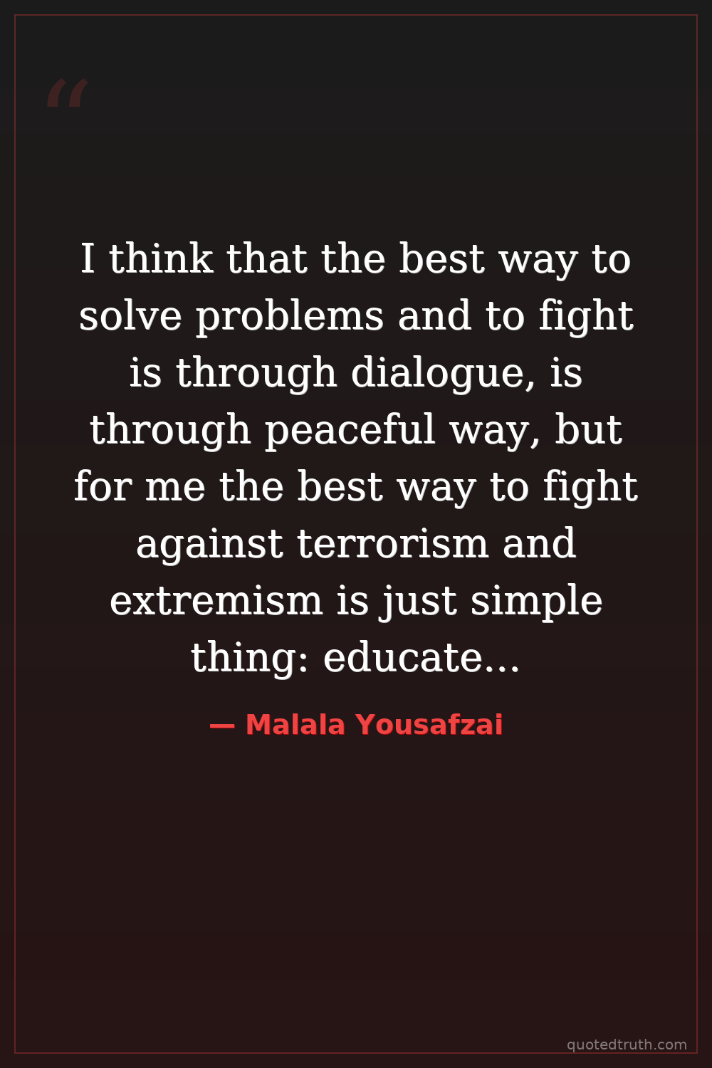 I think that the best way to solve problems and to fight is through dialogue, is through peaceful way, but for me the best way to fight against terrorism and extremism is just simple thing: educate the next generation.