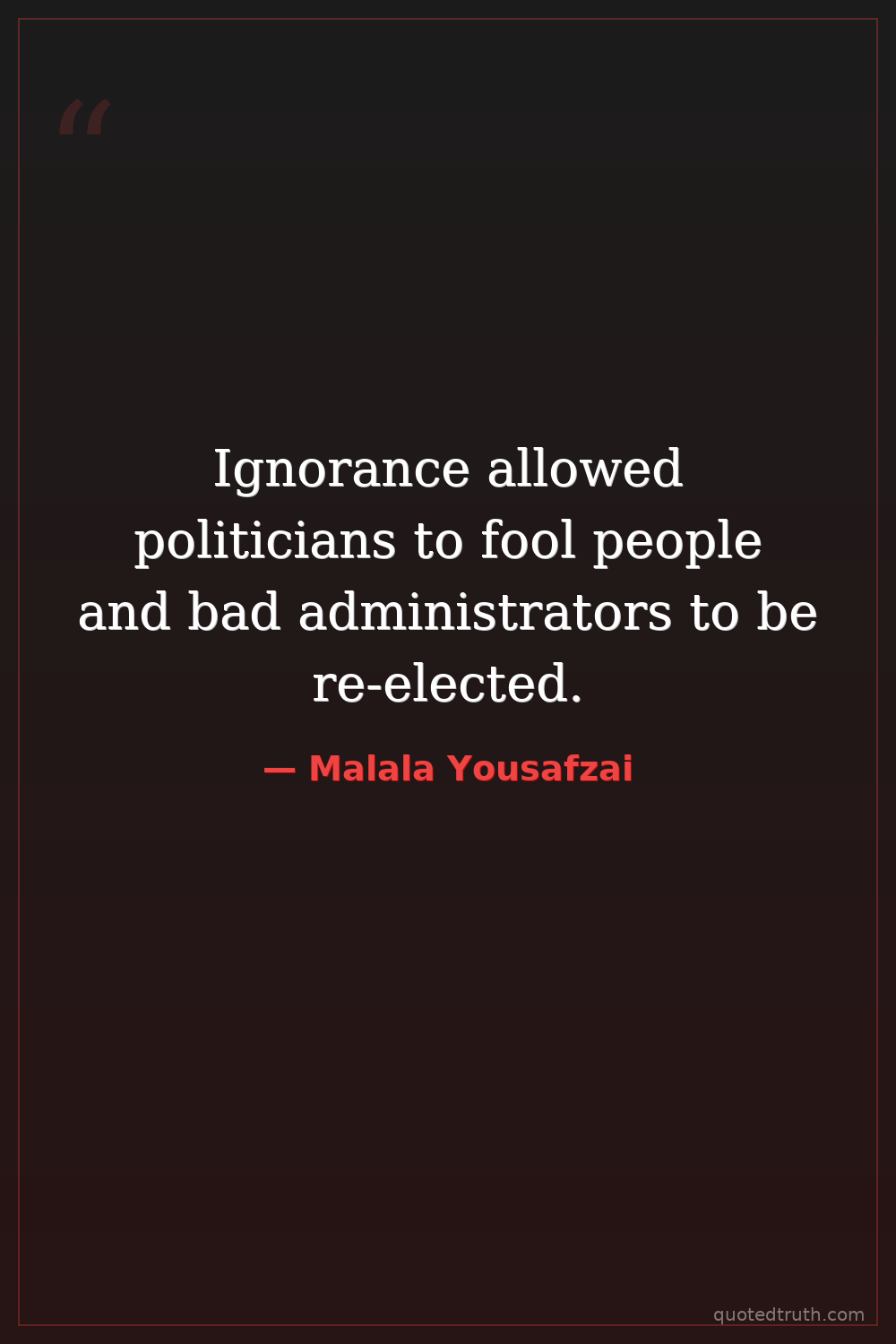 Ignorance allowed politicians to fool people and bad administrators to be re-elected.