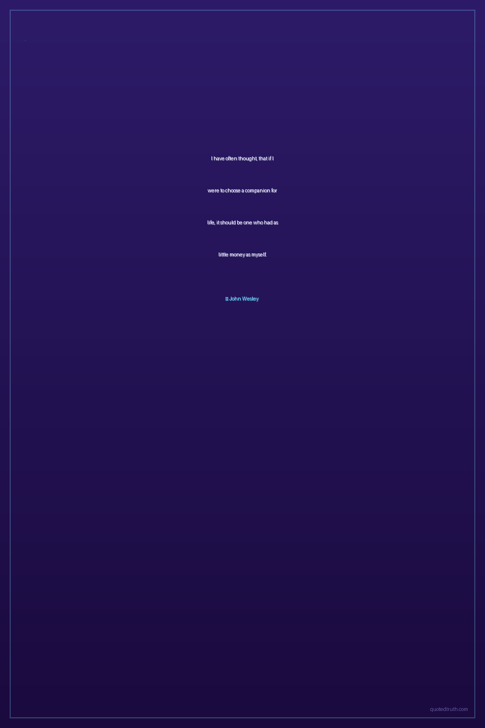 I have often thought, that if I were to choose a companion for life, it should be one who had as little money as myself.