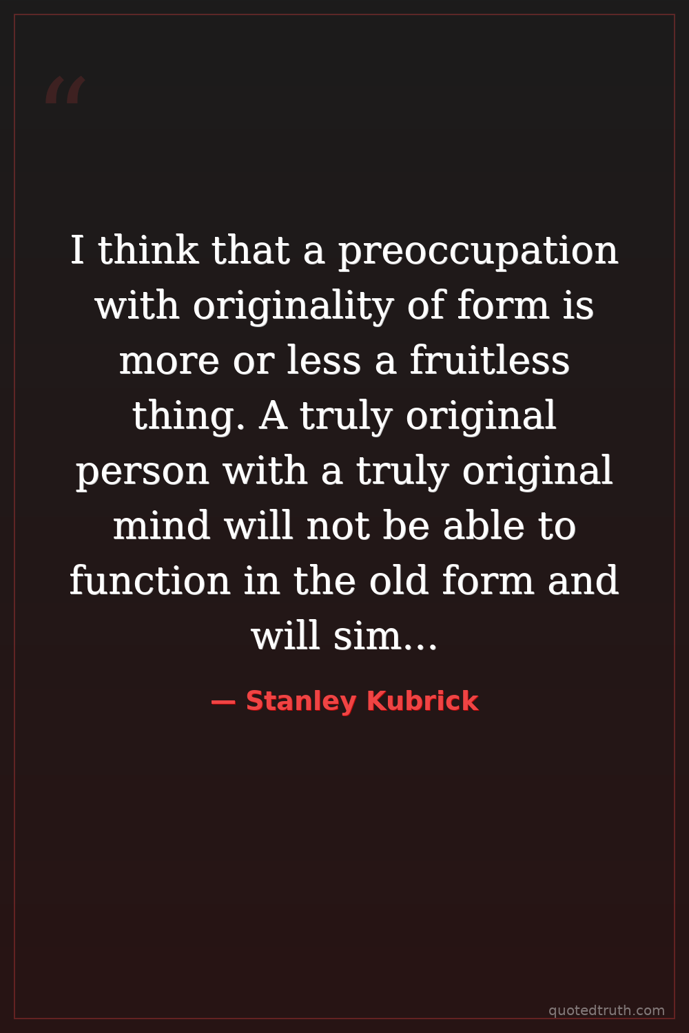 I think that a preoccupation with originality of form is more or less a fruitless thing. A truly original person with a truly original mind will not be able to function in the old form and will simply do something different. Others had much better think of the form as being some sort of classical tradition and try to work within it.