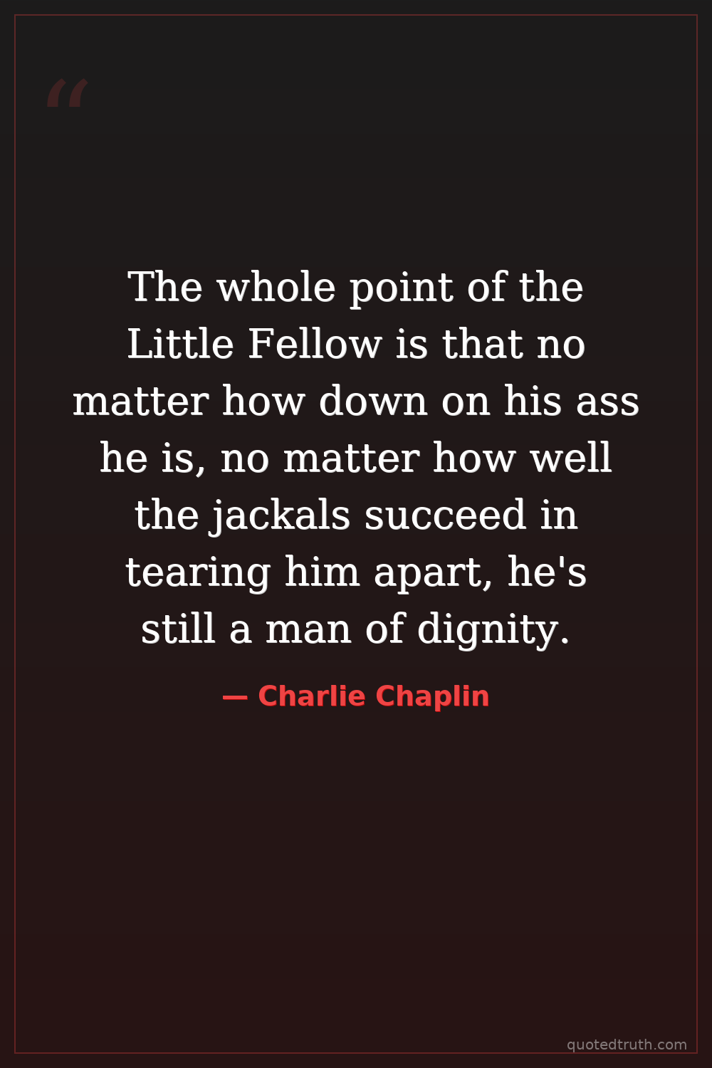 The whole point of the Little Fellow is that no matter how down on his ass he is, no matter how well the jackals succeed in tearing him apart, he's still a man of dignity.
