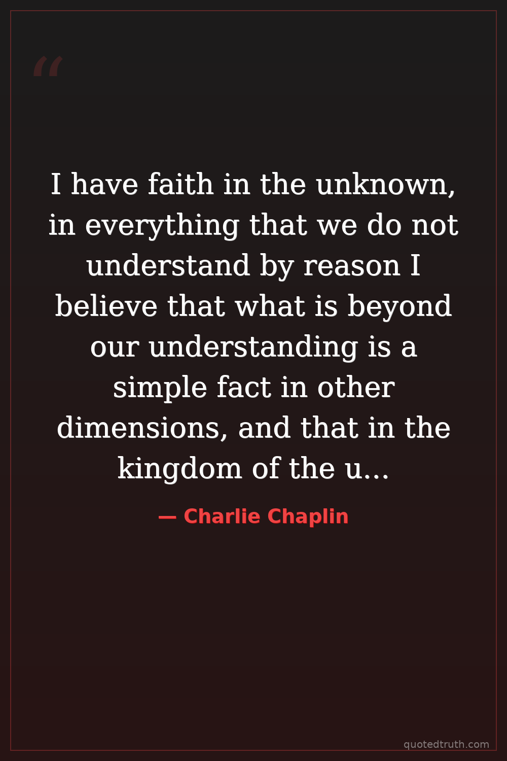 I have faith in the unknown, in everything that we do not understand by reason I believe that what is beyond our understanding is a simple fact in other dimensions, and that in the kingdom of the unknown there are immense reserves of energy for good.