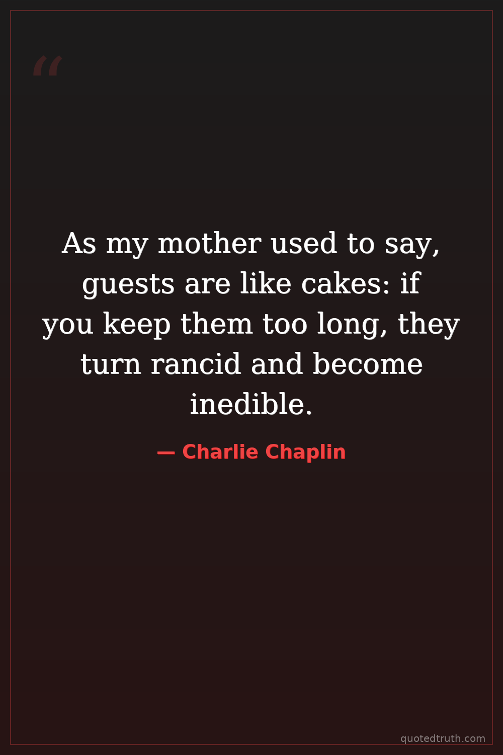 As my mother used to say, guests are like cakes: if you keep them too long, they turn rancid and become inedible.