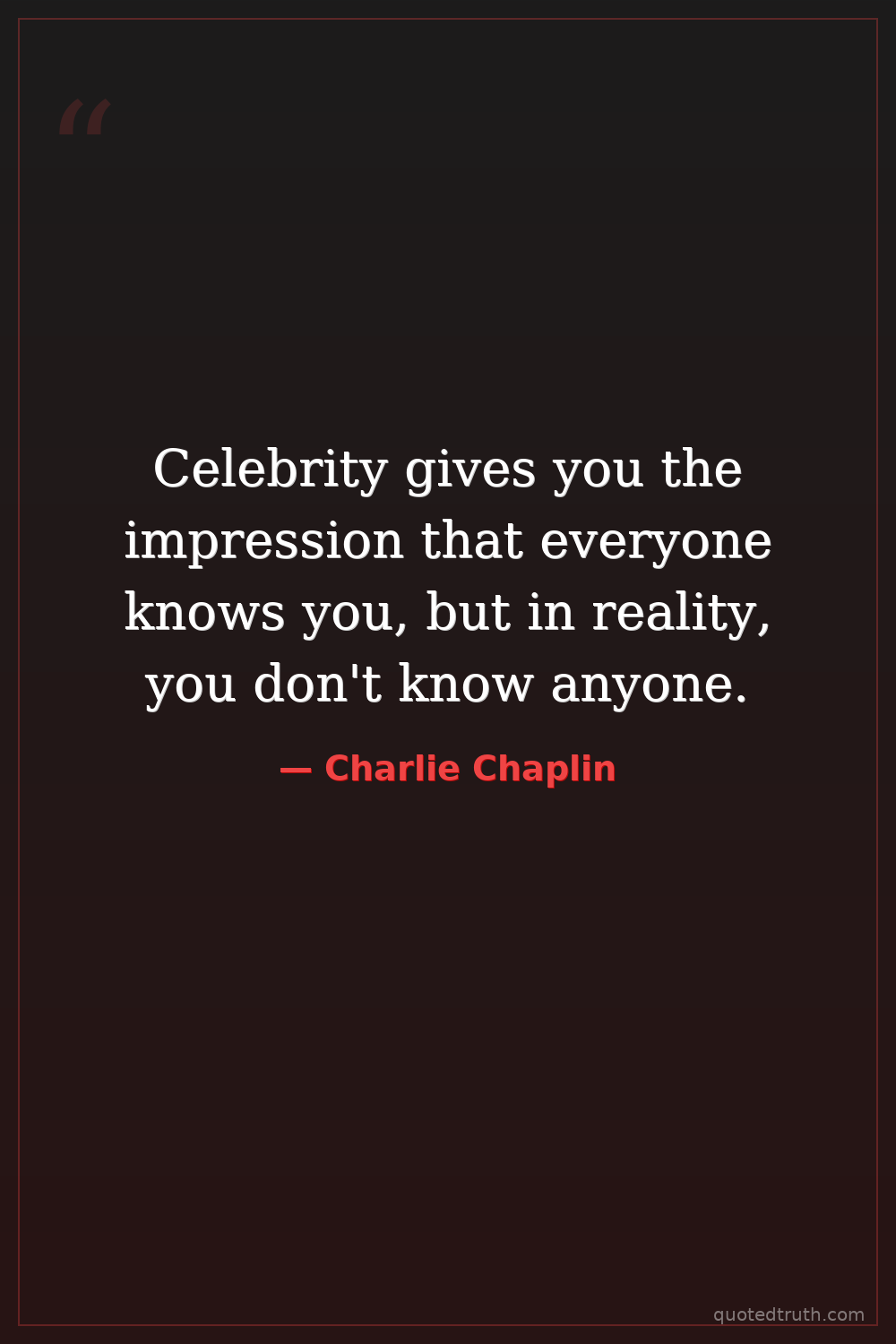 Celebrity gives you the impression that everyone knows you, but in reality, you don't know anyone.