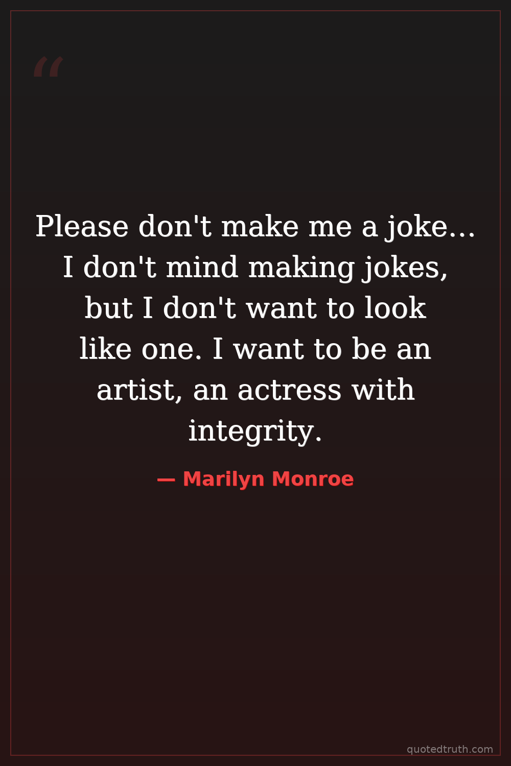 Please don't make me a joke… I don't mind making jokes, but I don't want to look like one. I want to be an artist, an actress with integrity.