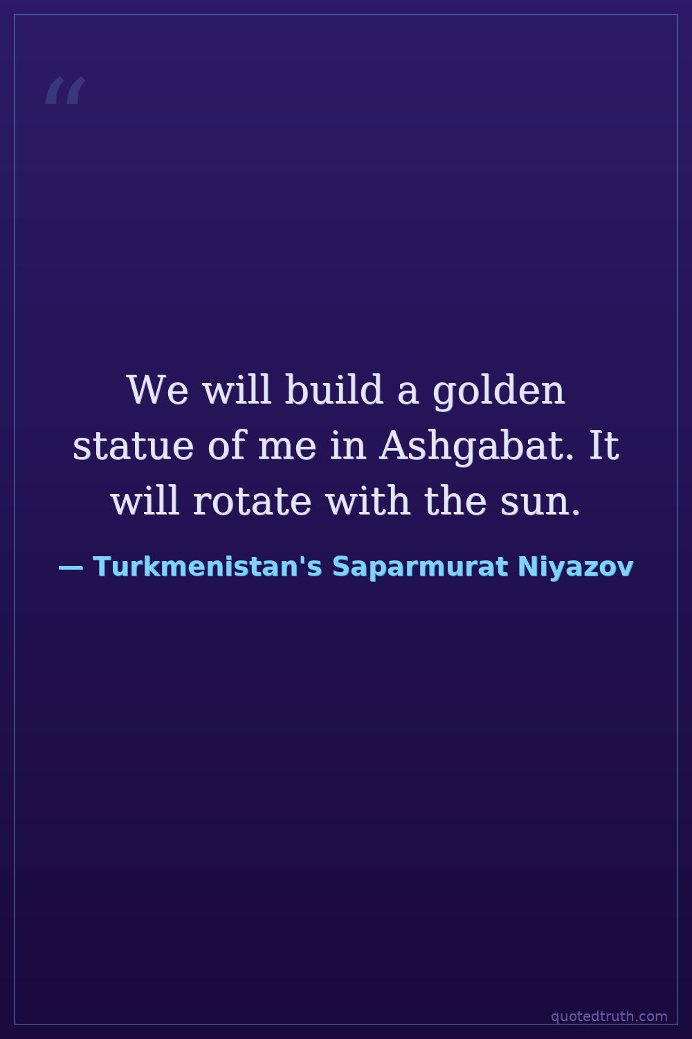 We will build a golden statue of me in Ashgabat. It will rotate with the sun.