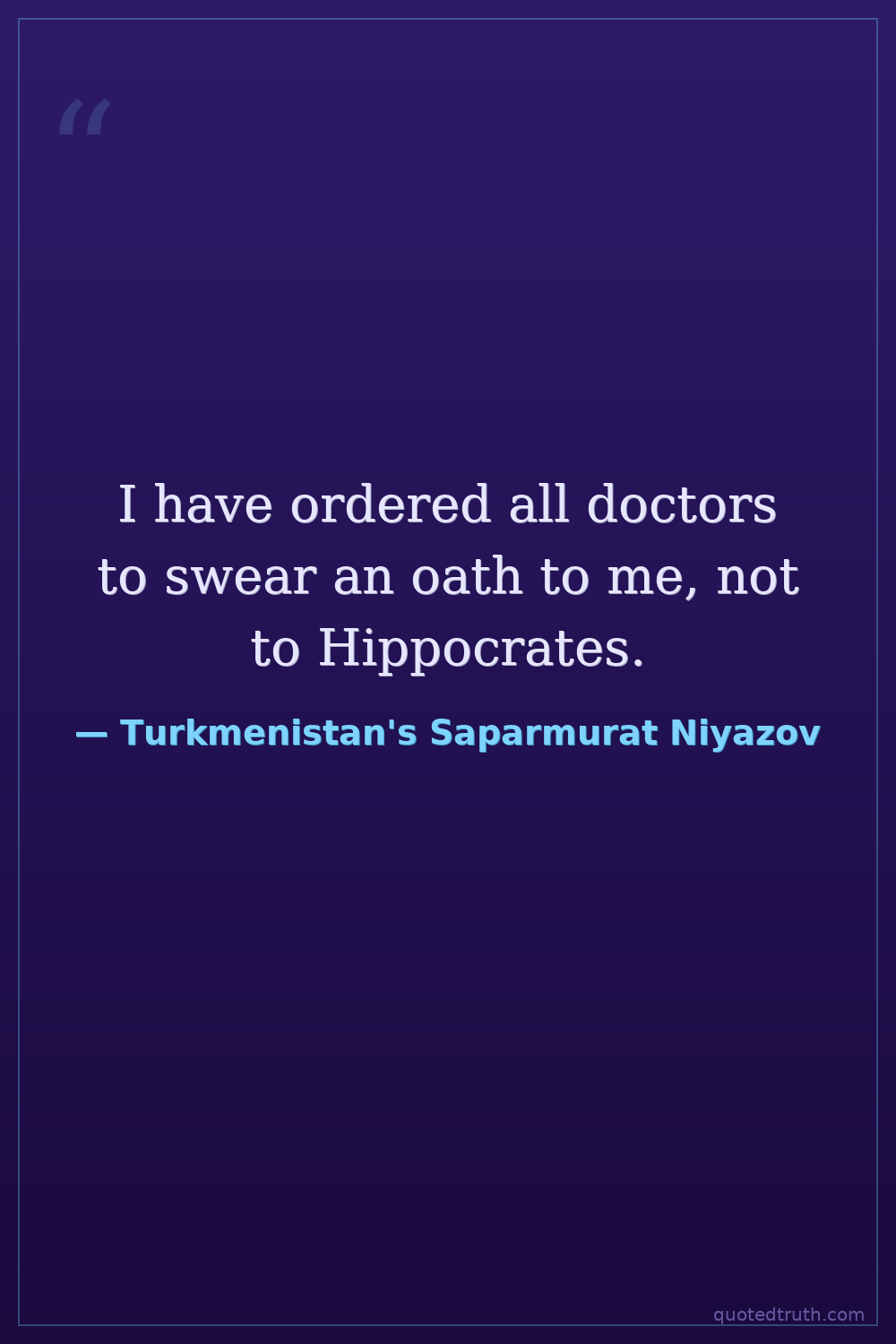 I have ordered all doctors to swear an oath to me, not to Hippocrates.