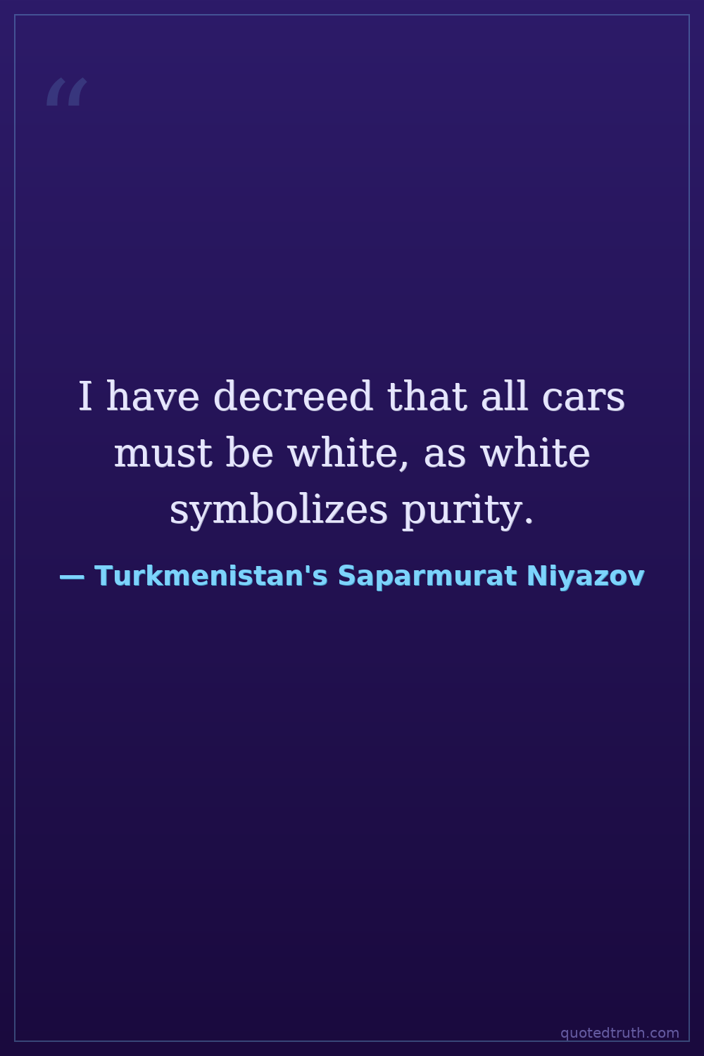 Strange & Unusual"I have decreed that all cars in the country must be white. It is a symbol of purity."