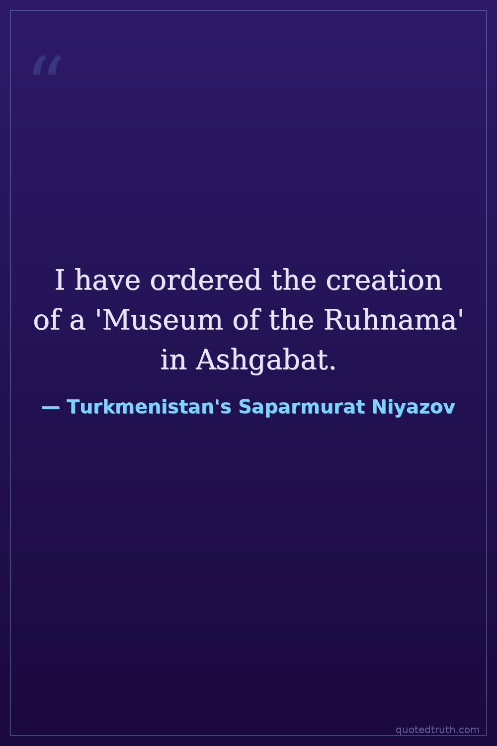 I have ordered the creation of a 'Museum of the Ruhnama' in Ashgabat.