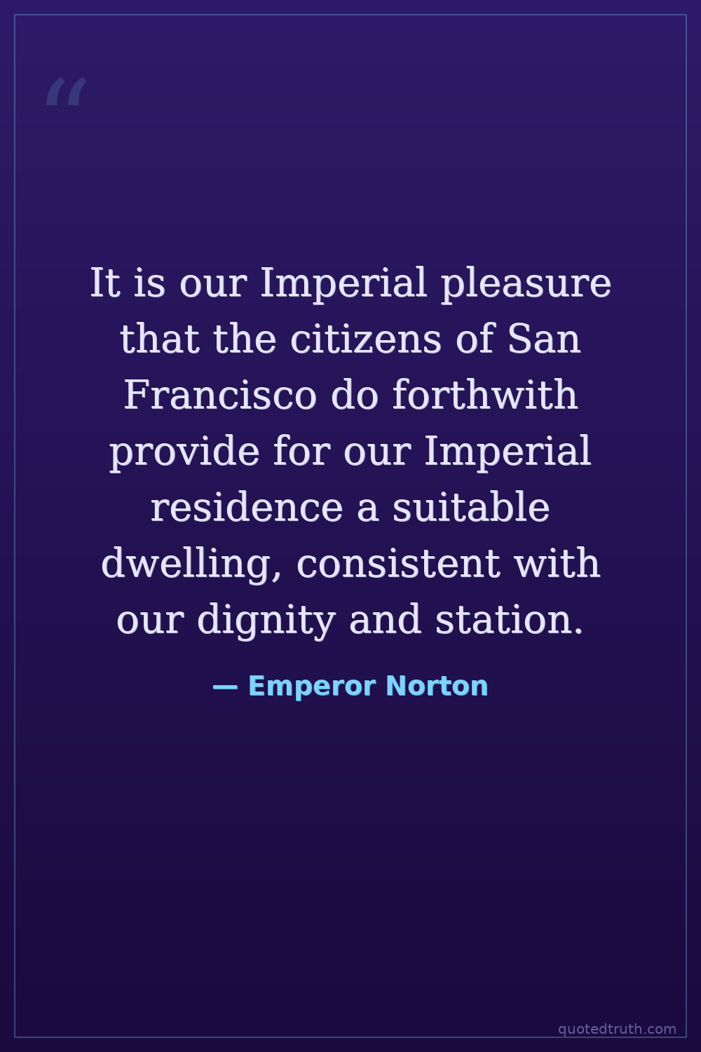 It is our Imperial pleasure that the citizens of San Francisco do forthwith provide for our Imperial residence a suitable dwelling, consistent with our dignity and station.