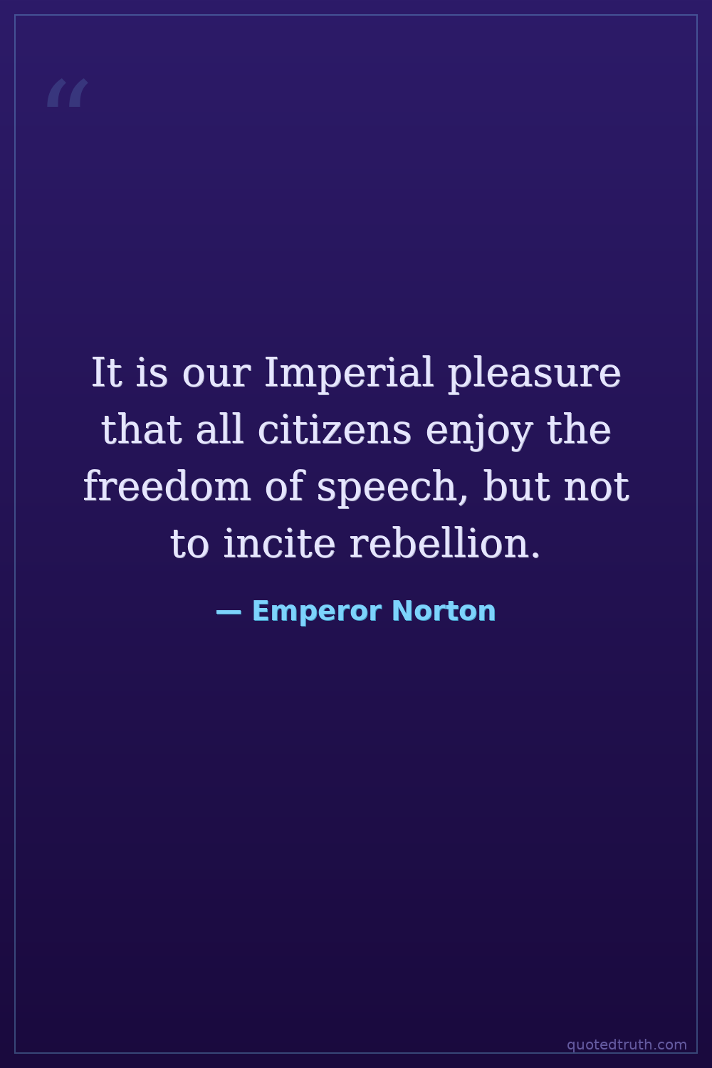 It is our Imperial pleasure that all citizens enjoy the freedom of speech, but not to incite rebellion.
