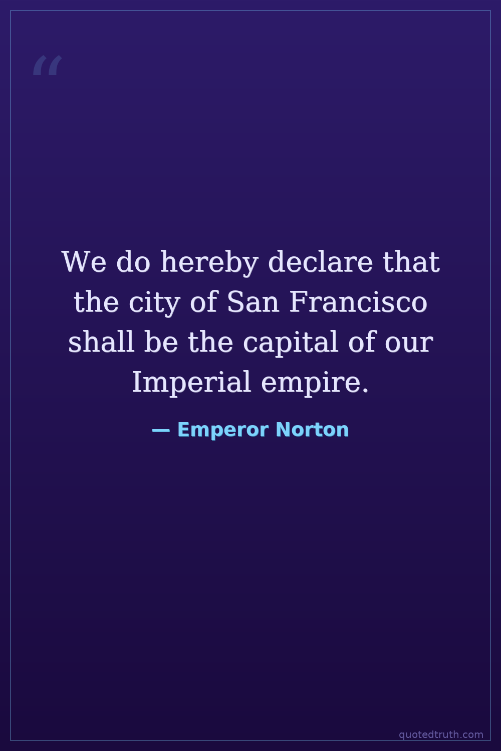 We do hereby declare that the city of San Francisco shall be the capital of our Imperial empire.