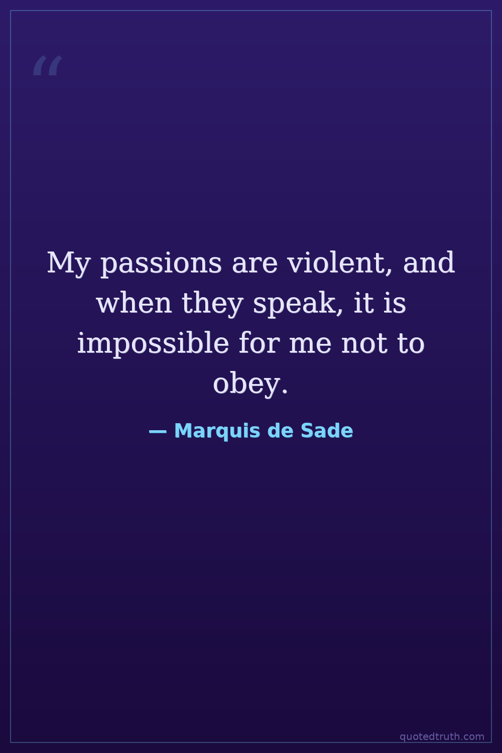 My passions are violent, and when they speak, it is impossible for me not to obey.