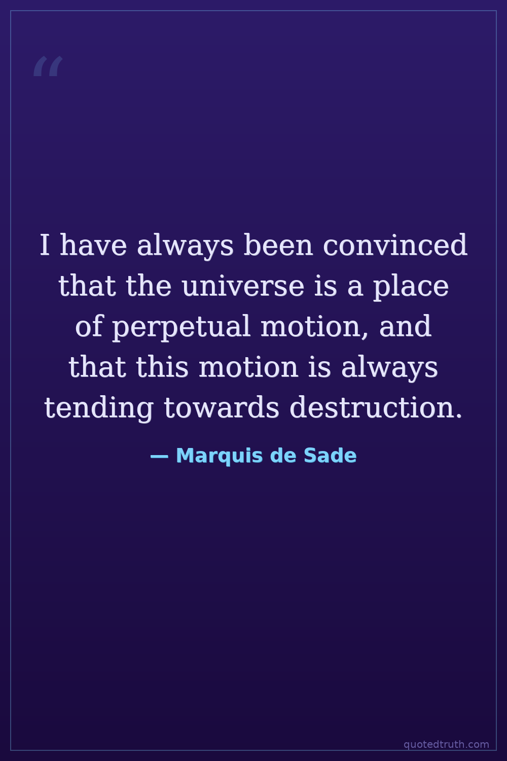 I have always been convinced that the universe is a place of perpetual motion, and that this motion is always tending towards destruction.